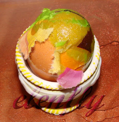 και κολλάτε ένα ένα τα χαρτάκια επάνω στο αυγό περνώντας με το πινελάκι απο πάνω